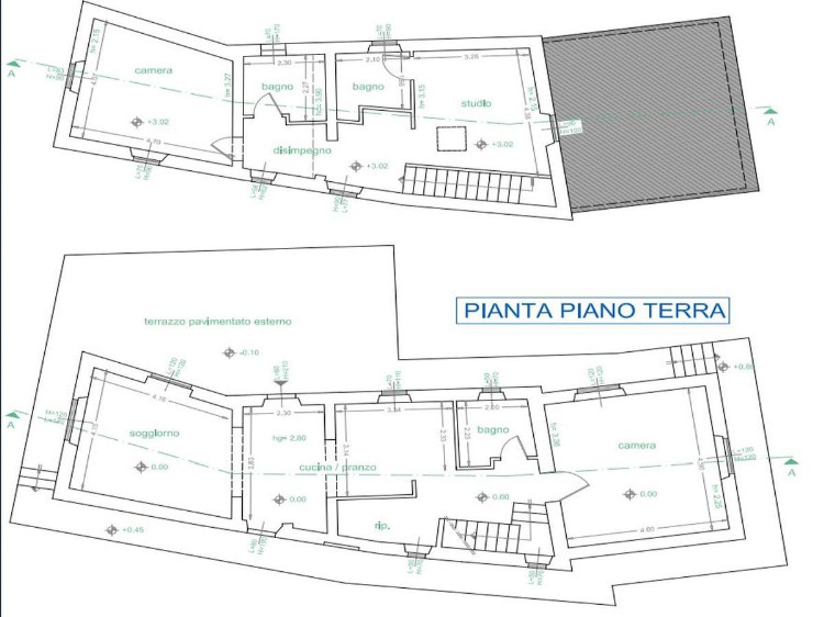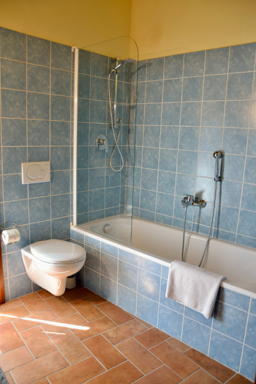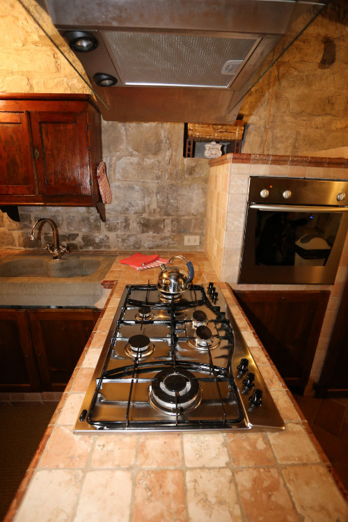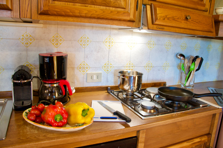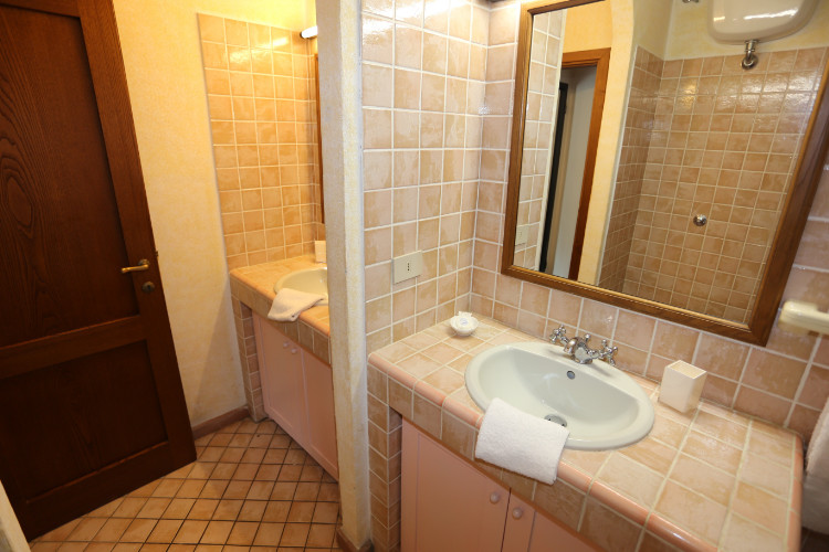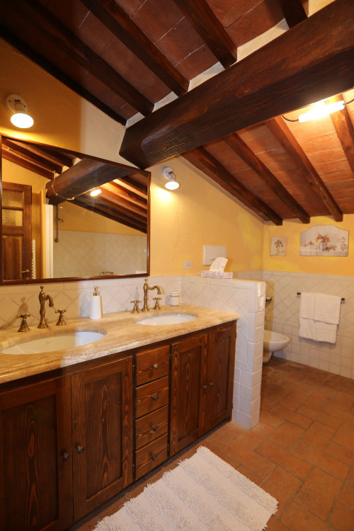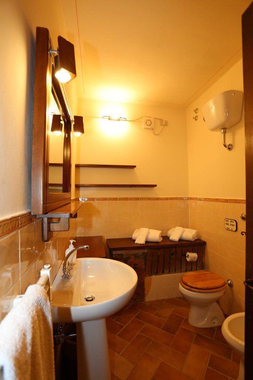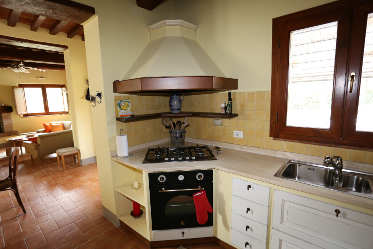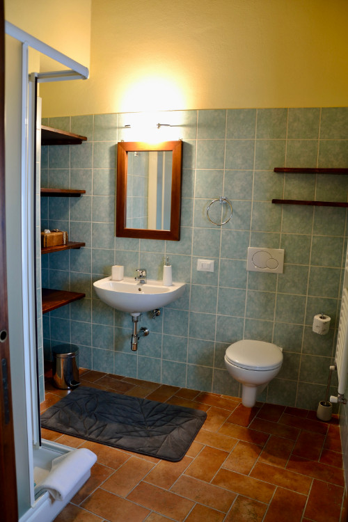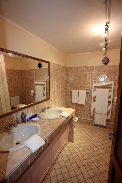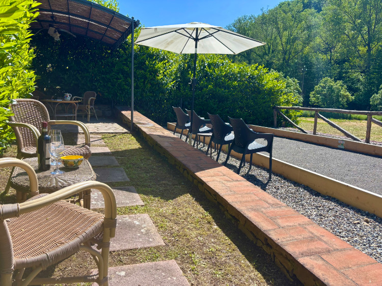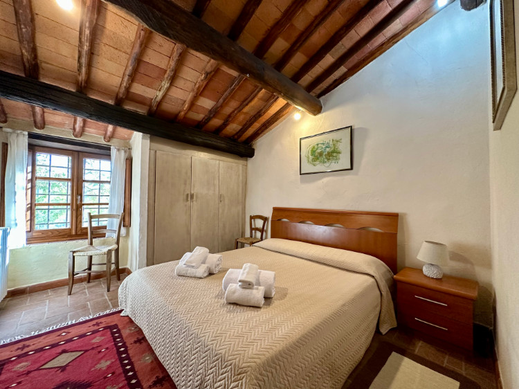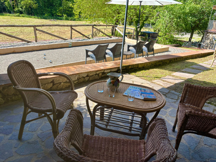 Beide Etagen verfügen jeweils über ein Schlafzimmer mit Doppelbetten, eine Wohnküche und jeweils zwei Bäder, die obere Wohnung hat zudem eine schöne, gedeckte Terrasse mit Blick auf die umliegenden Felder und auf die „Campo da Bocce“. Eine Waschküche befindet sich im Nebengebäude und steht unseren Gästen zur Verfügung.